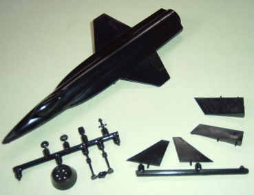このX−15はマルサン1/100シリーズで唯一のロケット機です。キャノピーは窓のクリアー部品が無く、窓枠のみの表現は違和感を覚えました。垂直尾翼は1枚成型で、かなりヒケが出ていました。着陸用のソリはちょっと貧弱で頼りない感じです。プロポーションとしては、操縦席がやや後方に下がりすぎていて、その部分の表現がオーバーです。