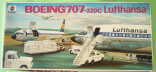 日東科学のボーイング707はこのシリーズの中で、もっとも形状がしっかりしたキットです。スジボリも落ち着いた印象で違和感がありません。操縦席とエンジンが見られるように機首とエンジンカウリングのクリアーパーツが入っていまが見せるほどのものではありません。日本国内では、採用した航空会社が無かったこともあり、国内での人気は今一なの残念です。個人的には、はじめて見たジェット旅客機なので、思い入れが強いのですが。