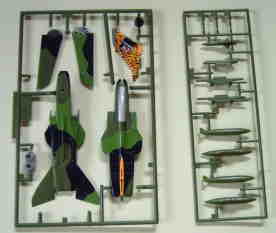子供向きの塗装済みのキット。垂直尾翼の虎の黄色と黒の模様は印刷。キャノピーは塗装表現。主翼は後退位置にモールドされている。