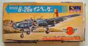 三和模型から出ていたB−26です。形状は胴体断面形、主翼の断面形ともにひどいキットです。この頃の国産プラモの常で翼の断面形状などは無視したキットが多かったと思います。まあ、まともに作ろうなどといった野望は抱かないほうが身の為です。このキットは現在でも、カワイから出ているようですので、興味のある人は探してみてはいかがでしょうか。スケールは1/100ではないことが分かりました。実際は主翼が1/112、胴体は1/108位です。