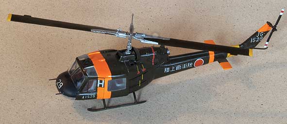 タミヤから発売された1/100スケールのUH−1Bイロコイは搭載兵器などのアクセサリーが多数付属していて、発売当初人気のあったキットです。形状は賛否両論あると思いますが、私に言わせれば、つぶれたカエルみたいな顔をしたイロコイです。正面から見た時、横ひろがりになっているのです。操縦席上部の窓のあたりの断面も変です。機内は操縦席、客室内のシートも用意されていて、このスケールとしては十分でしょう。
