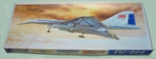 コンコルドスキーと揶揄されたロシア版の超音速旅客機ですが、VEBから発売されていた1/100スケール Tu−144のキットは試作型で、パリショーで墜落した機体とはかなり違っています。日東の1/100のコンコルドも試作機ですので、試作機2機を並べてみたいものですが、いまだ完成の見込みがありません。形状で気になるのは、機首が細すぎる事、翼が単なる平らな板で、実機のような前縁の鼻曲がり断面が全く表現されていません。材質が非常に硬いので、削るのは非常に大変です。